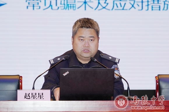 报告会上,赵星星结合学生管理过程中发现的一些问题,深入浅出地阐述了未成年人保护的新形势新局面。他围绕防溺水、防电信诈骗、校内安全、法制教育等议题,结合现实生活中的真实案例,用通俗易懂的语言进行了详细解读。