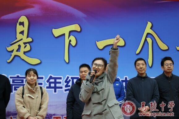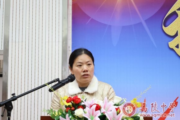 她首先对获奖同学和班级表示祝贺。接着要求同学们在看到成绩同时也要看到差距,更要看到希望。在最后的70天里,同学们要有信心和勇气,要勤学善思排除干扰,要提高学习效率,全体高三老师将和同学们一起以冲刺者姿态, 共赴美好未来,为三模乃至高考取得好成绩一起拼搏奋斗。