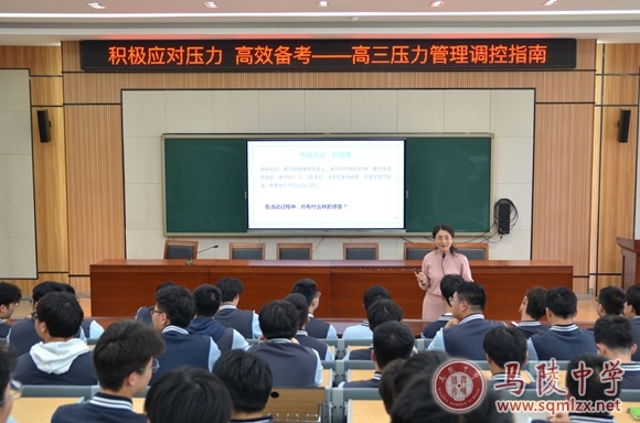 随着高考临近,高三学生的学习和生活变得越发紧张。为帮助学生们释放心理压力,增强情绪调节机能,以更加饱满的热情和能量迎接未来的挑战,我校学生成长指导中心负责人袁艳红为高三学生开设压力管理调控指南讲座。
