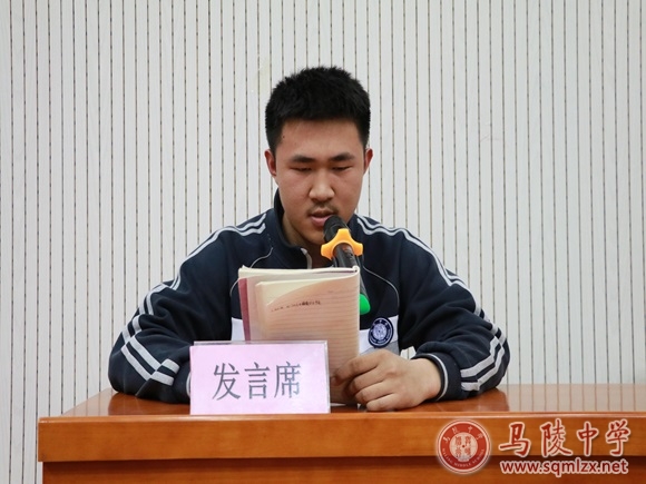 会议第四项议程,代表发言。学生代表高二(16)班陈轩宇同学在大会上发言。他毫无保留地分享了自己的学习经验:首先既要抓住优势学科,也不放弃弱势科目,扬长避短,徐徐图之。其次提高课堂学习效率,积极与任课老师互动。再次,课余及时查漏补缺,总结适合自己的学习方法。陈轩宇自信沉稳的发言,赢得了在场同学的热烈掌声。