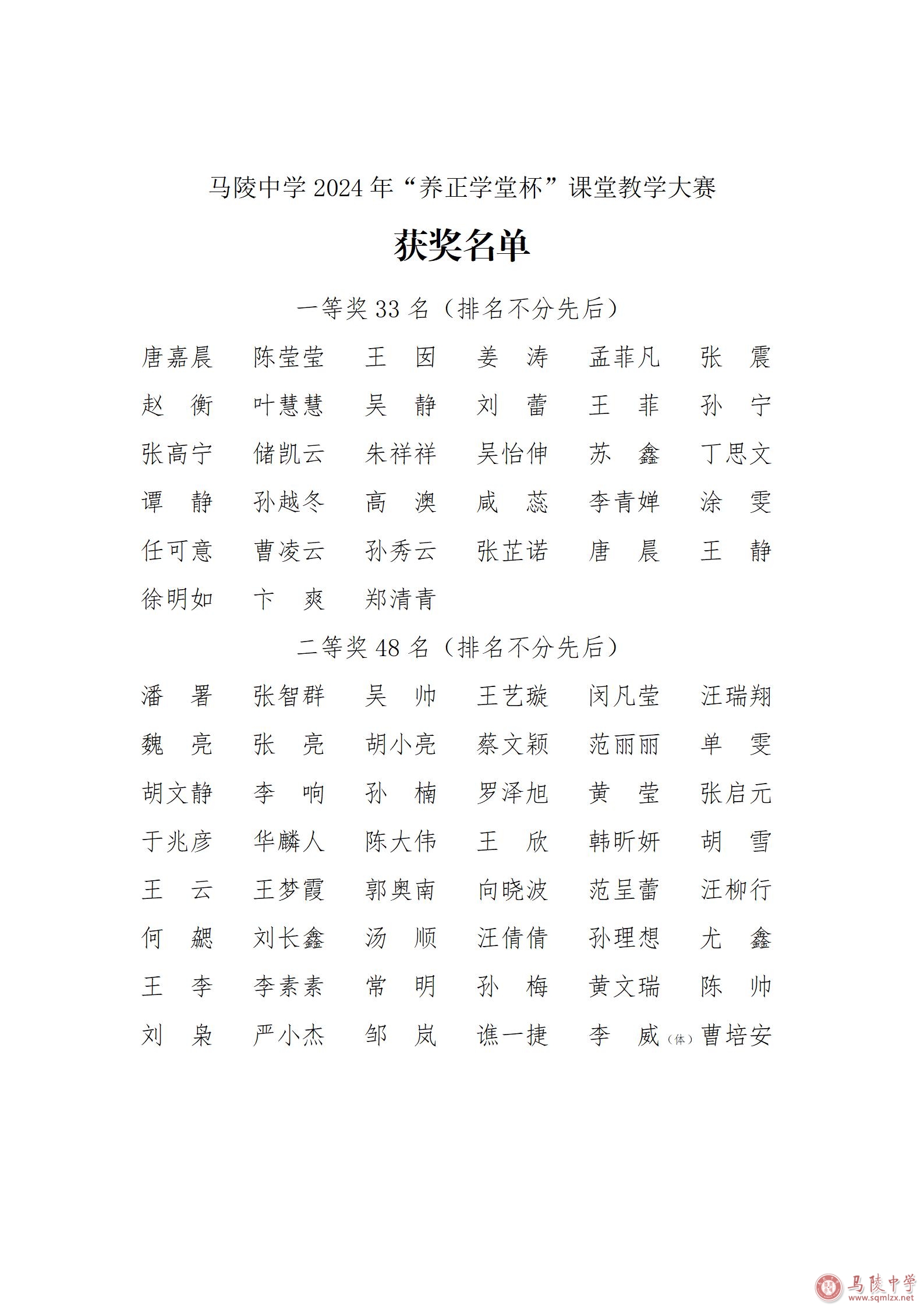 2024年“养正学堂杯”课堂教学大赛获奖名单