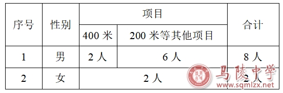4.若女生末招满,剩余名额补充在男生的非400米项目中排名录取。