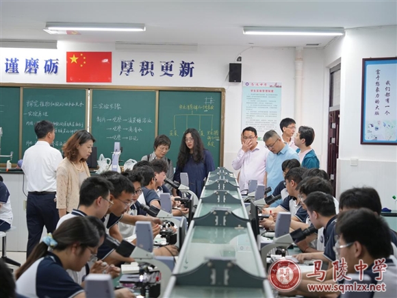 调研组首先参观了我校的生物课程实践基地,宋志平生动介绍了阳光房和鸣池的建设及使用情况。随后,参观了我校的信息化核心设施,包括网络中心机房、考点控制中心、阅卷扫描室、录播室、校园电视台、电子阅览室和学生机房。接着,调研组观摩了物理、化学和生物的实验教学课程,并视察了实验准备室、技术与设计室、无人机社团和激光雕刻切割社团。参观调研过程中,宋志平就我校的科学教育理念和特色与专家组成员进行了深入交流。