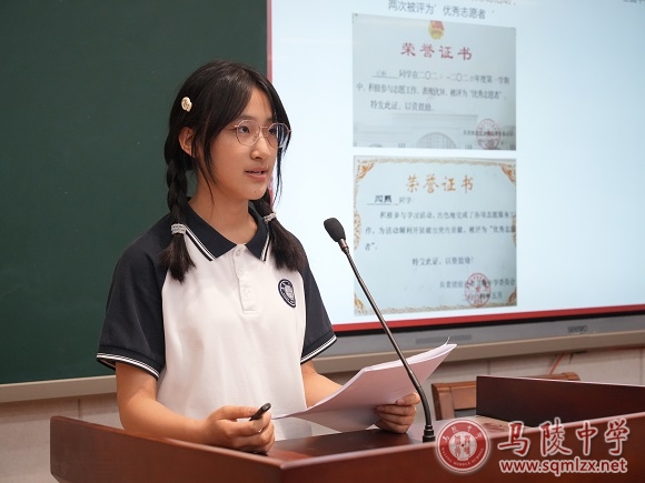 大会第一项议程,现任学生会副主席邱雨萱同学做《马陵中学学生会工作报告》。工作报告对过去一年学生会各项工作进行了细致翔实的分析和总结,并对未来一段时间的工作作出科学规划。各位代表对《马陵中学学生会工作报告》进行讨论、审议并予以通过。