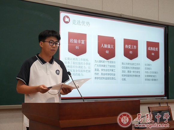 八名候选人每人进行五分钟以内的精彩竞职演讲。他们或展示自己的个人优点,或提出自己对于学生会工作的合理构想和建议,气氛热烈紧张。