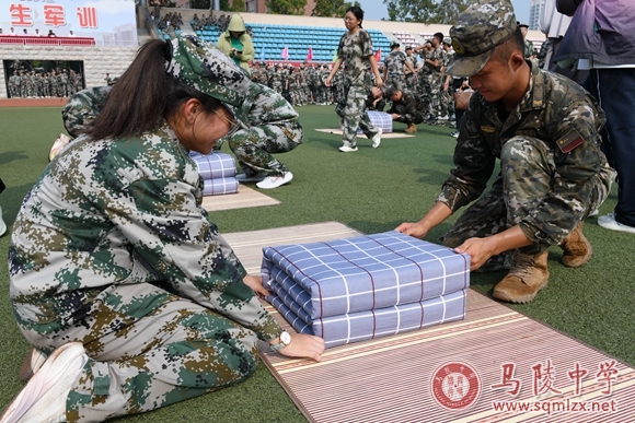 活动现场学生们进行了叠军被表演,他们动作娴熟,手法标准,将一块块看似普通的被子折叠成了棱角分明、整齐划一的“豆腐块”。