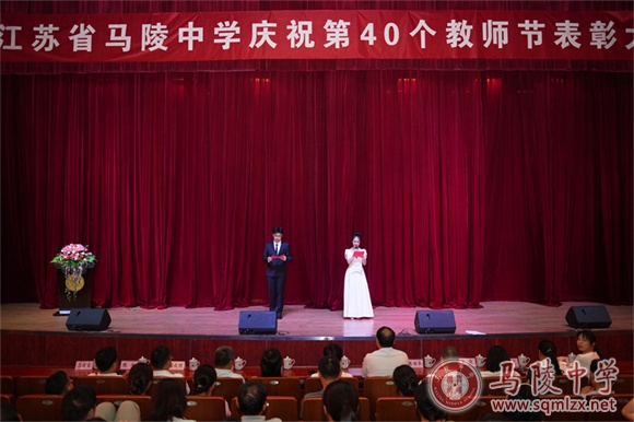 为庆祝第40个教师节,表彰先进,激励干劲,弘扬尊师重教的社会风尚,9月9日下午,马陵中学召开以“大力弘扬教育家精神加快建设教育强国”为主题的第40个教师节表彰大会。会议由学生夏雨、伍玲锐主持。