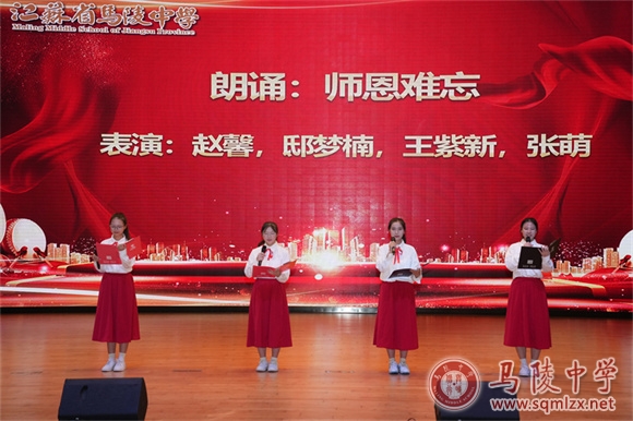 学生赵馨、邸梦楠、王紫新、张萌倾情献上诗朗诵《难忘师恩》,表达了浓浓的感恩之情。