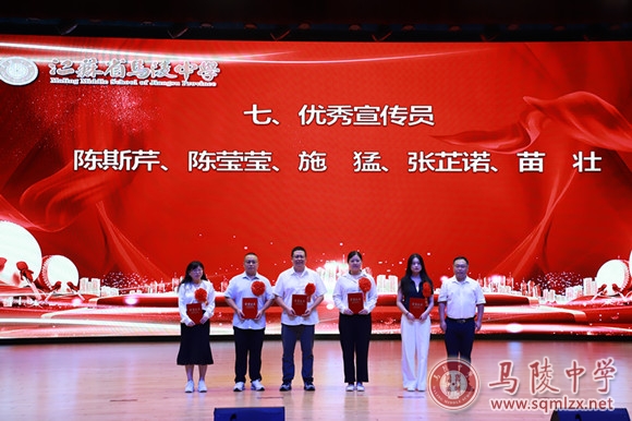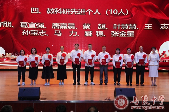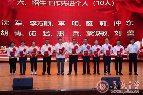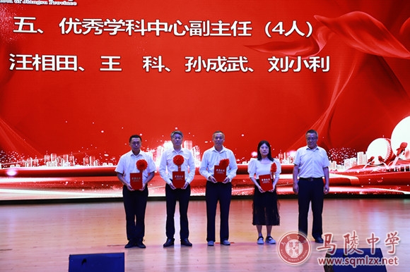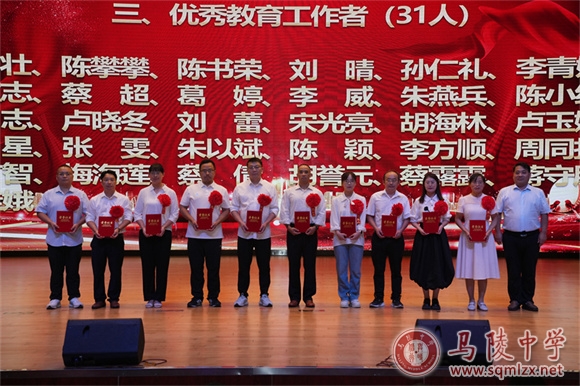 学校领导为获得2023年度目标考核优秀奖、优秀班主任奖、优秀教育工作者奖、教科研先进个人奖、优秀学科中心副主任奖、招生工作先进个人奖、优秀宣传员奖、青蓝工程优秀指导老师奖、青蓝工程优秀青年教师奖、优秀备课组奖、优培提升奖、突出贡献奖等集体和个人颁奖。