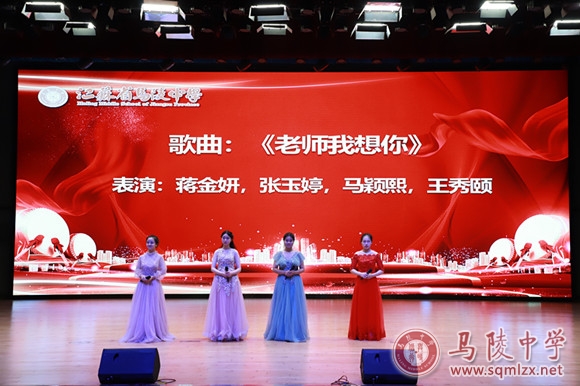 “你的恩泽如绵绵细雨滋润我心底……”歌曲《老师我想你》和《长大后我就成了你》将现场气氛推向高潮。颁奖结束后,全体教师齐唱《马陵中学校歌》,余韵中再次坚定“历史的重任担在肩”的教育初心。