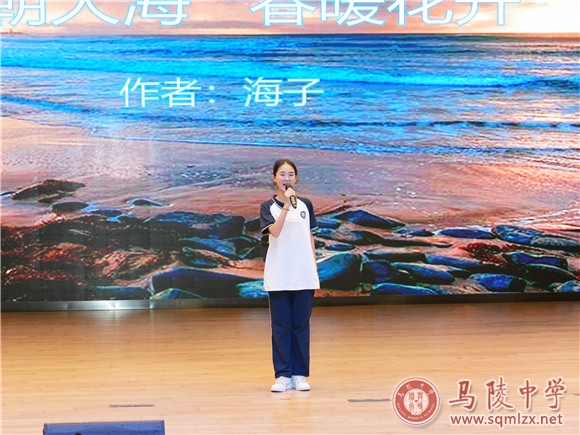 高一(31)班同学带来的《囚歌》饱含对真理、自由和正义的渴望追求;高一(5)班、(18)班同学诵读的《月光下的中国》充满诗意,深情诉说着对美丽中国的热爱赞美。高一(30)班、(32)班分别带来的《面朝大海,春暖花开》和《生如夏花》温暖明朗;高一(4)班同学诵读的《沁园春·长沙》慷慨激昂;高一(6)班同学朗诵的《红烛》铿锵有力;高一(1)班同学的《中华颂》和高一(23)班同学的《初心》,真挚而热烈,提醒我们广阔天地更应不负使命。