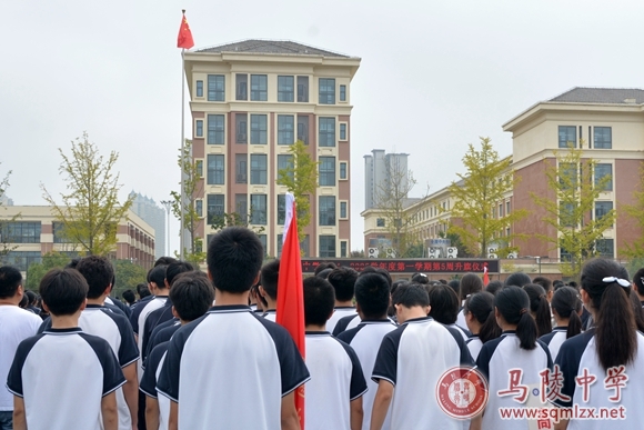 早晨9时25分,马陵中学全体师生齐聚操场,列队整齐。在庄严的国歌声中,鲜艳的五星红旗伴随着雄壮的旋律冉冉升起,迎风飘扬。全体师生肃立,向国旗行注目礼,表达对祖国的无限热爱和崇高敬意。