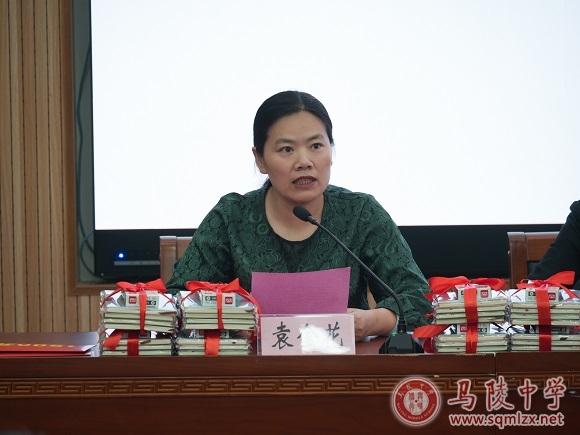 第二项议程:马陵中学工会主席袁金花介绍“亚萍春蕾班”筹备情况。