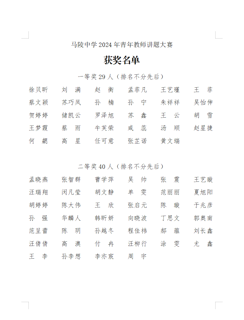 马陵中学|马陵中学2024年青年教师讲题大赛获奖名单