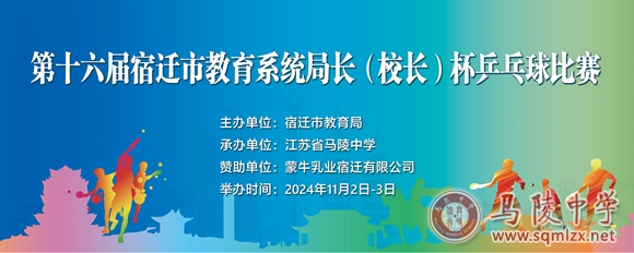 2024年11月2日至3日,第十六届宿迁市教育系统局长(校长)杯乒乓球比赛在江苏省宿迁市马陵中学举行。此次比赛由宿迁市教育局主办,宿迁市马陵中学承办,吸引了宿迁各地共计49支队伍的参与,分为县(区)局长组、高中校长组、中专校长组、初中校长组、小学校长组、职工组共计6个组别进行比赛。
