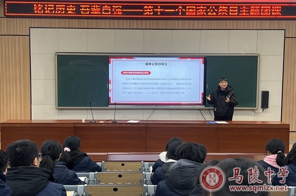 上午大课间,校团委广播站广播员张梓羽通过广播进行了国家公祭日宣讲。宣讲中,她以饱含深情的语调讲述了南京大屠杀那段黑暗历史的惨状,三十万同胞惨遭日军屠戮,无数家庭支离破碎,南京城沦为人间炼狱。同时,也强调了国家公祭日设立的意义,呼吁同学们铭记历史,珍惜和平,努力学习,用实际行动为祖国的强大贡献力量。其真挚的话语回荡在校园的每个角落,让全体师生陷入沉思,深刻感受到历史的沉重与和平的珍贵。