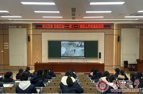 校团委组织新发展团员代表以及高三年级各班级团支书在青年团校开展教育活动,校团委孙宁老师为大家讲解南京大屠杀事件经过以及其历史影响。
