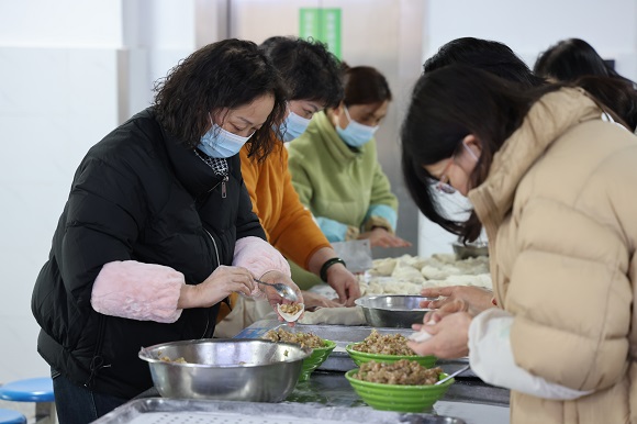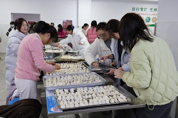 老师们动作娴熟,有条不紊,一边忙碌着,一边交流着包饺子的经验。随着时间的推移,一个个饺子整齐有序地摆放在托盘上。欢乐的气氛洋溢在每个角落,整个过程热情高涨,笑意盈盈,暖意融融。