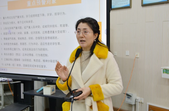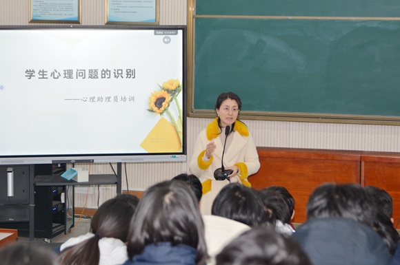 接着,袁艳红为大家作了《心理问题的识别》主题培训,聚焦在重大生活事件、重点预警对象、重要信息获取三点上,帮助大家提升“望闻问切”的能力,并提醒助理员们要时常保持一颗敏锐的心,关注关心班级同学心理状态。
