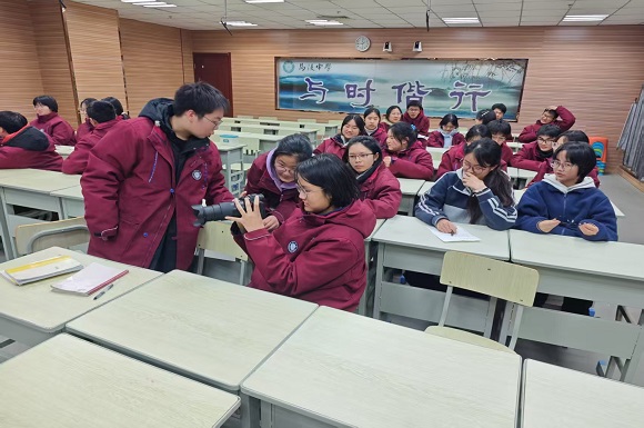 光影交错,原来是正在学习摄影技巧的摄影社团成员们,他们三三两两地聚在一起交流讨论,有经验的老学员们毫不吝啬地分享了自己的感悟,在这里,他们即将开启自己探索并记录美丽世界的新尝试。