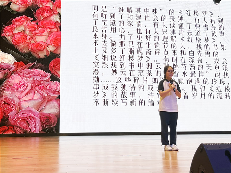 他们带着《红楼梦》,与我们分享家族兴衰背后的人生百态,歌颂青春的蓬勃;他们手捧《杀死一只知更鸟》,在文字中寻找勇气与正义;他们说《城南旧事》中的纯真是明媚的光,照亮少年迷惘的内心。在同学们的讲述中,我们看到了青春是坚定、是无畏、是永恒。