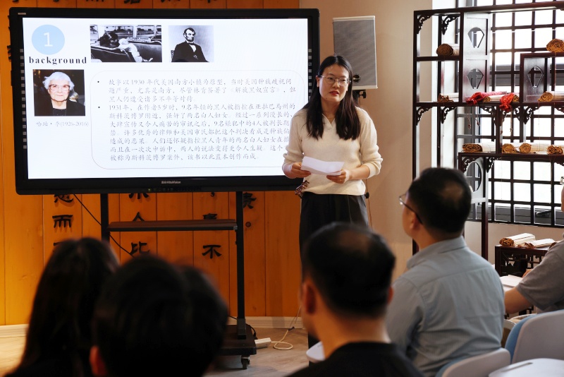 语文教师刘满分享了《主角》,带大家品味文字魅力与人生百态,感悟 “人生如戏、戏如人生” 的深刻内涵;数学教师王艺瑾引领大家走进数学天地,感受逻辑与思维的美妙;英语教师施颖通过《杀死一只知更鸟》,让老师们体会不同文化背景下的正义与人性思考。