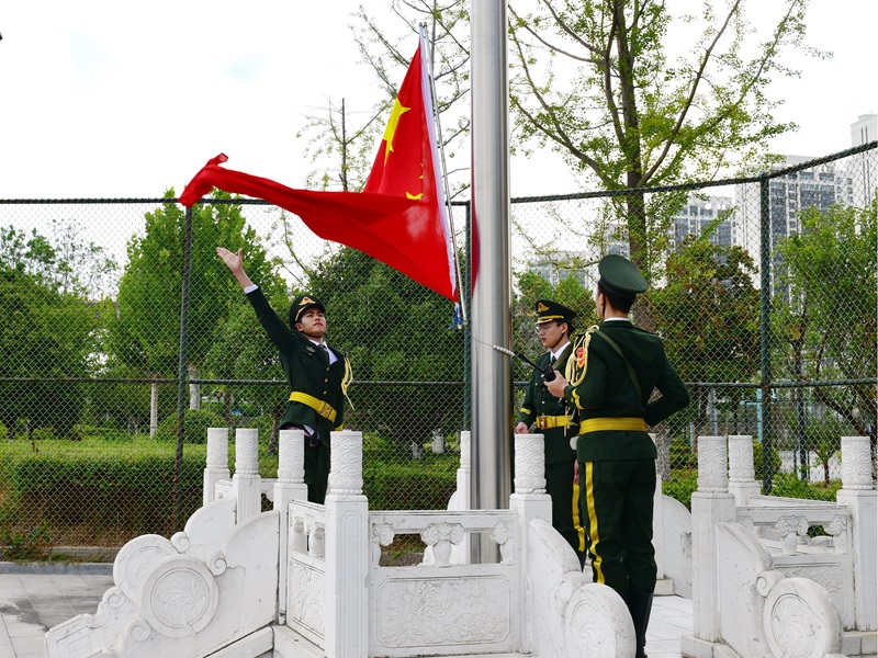 清晨的操场上,迷彩成海、青春如歌。1750余名高一新生目光坚定、身姿挺拔,以昂扬的精神面貌迎接高中生涯的“第一课”。在庄严的国歌声中,五星红旗冉冉升起,拉开了军训开幕式的序幕,也点燃了同学们心中的爱国之情与奋斗之志。
