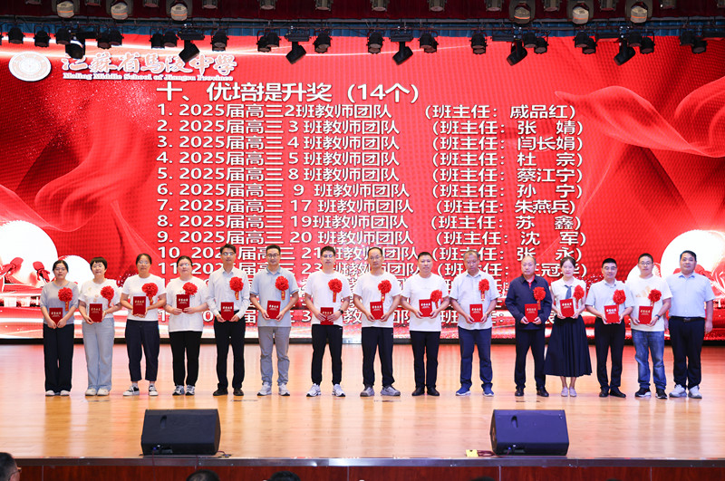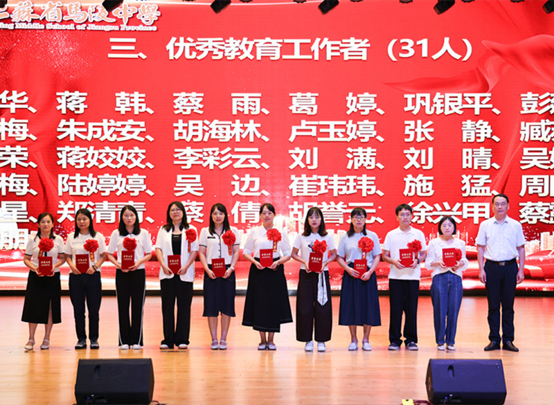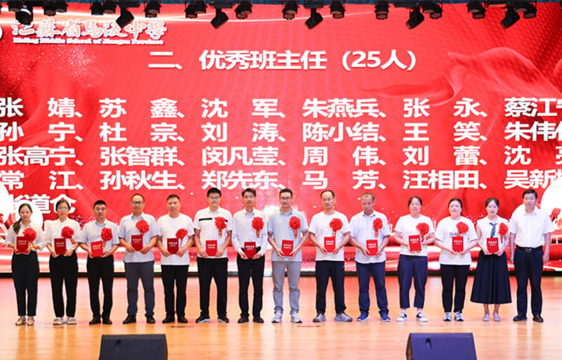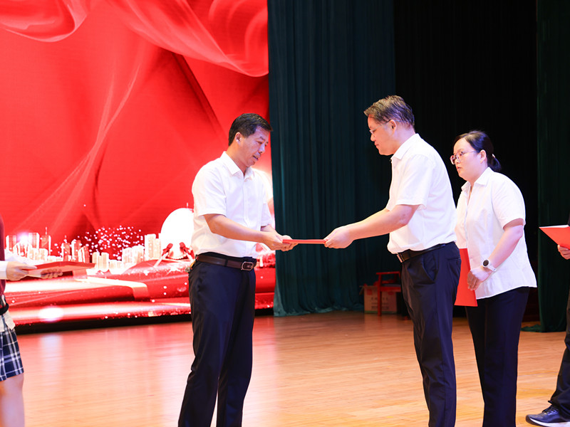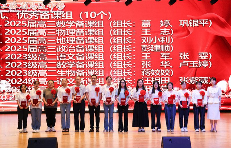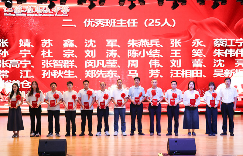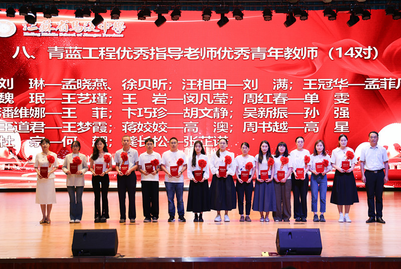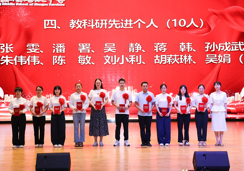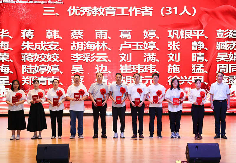 学校领导为获得2024年度目标考核优秀奖、优秀班主任奖、优秀教育工作者奖、教科研先进个人奖、优秀学科中心副主任奖、招生工作先进个人奖、优秀宣传员奖、青蓝工程优秀指导老师奖、青蓝工程优秀青年教师奖、优秀备课组奖、优培提升奖、功勋团队奖等集体和个人颁奖。