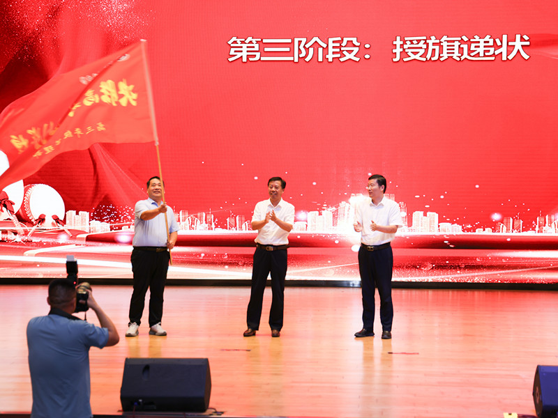 红旗招展,使命相继。铿锵乐声中,2025届高三年级分管领导、党委委员、副校长蔡之刚向党委书记宋志平呈旗。党委书记宋志平向2026届高三年级分管领导、党委委员、副校长褚俊清授旗。