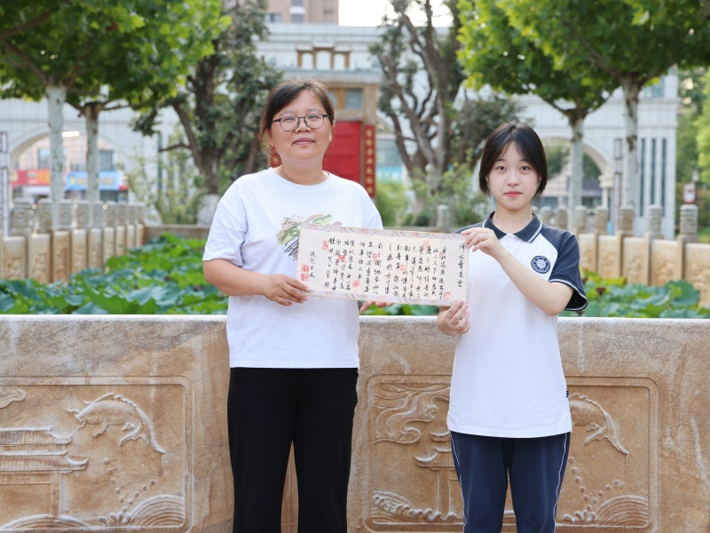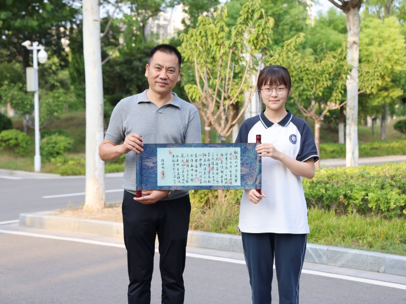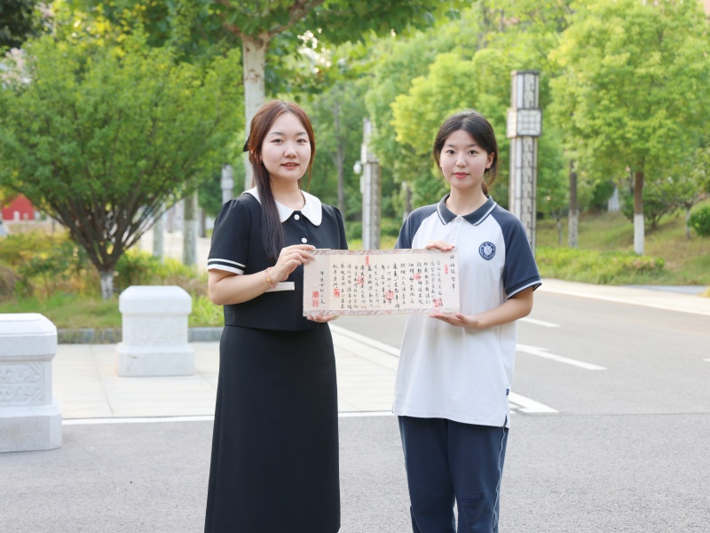 为使中华优秀传统文化与感恩教育相结合,团委特别组织了“笔墨寄情,感念师恩”书法作品敬赠活动。同学们挥毫泼墨,将对老师的赞美与祝福融入笔端。当学生代表们将装裱精美的书法作品郑重地送到老师手中时,老师们深切地感受到了这份礼物的独特分量与文化底蕴。这娟秀锦书既是同学们学业成长的证明,也成为了师生之间浓浓情谊的见证。