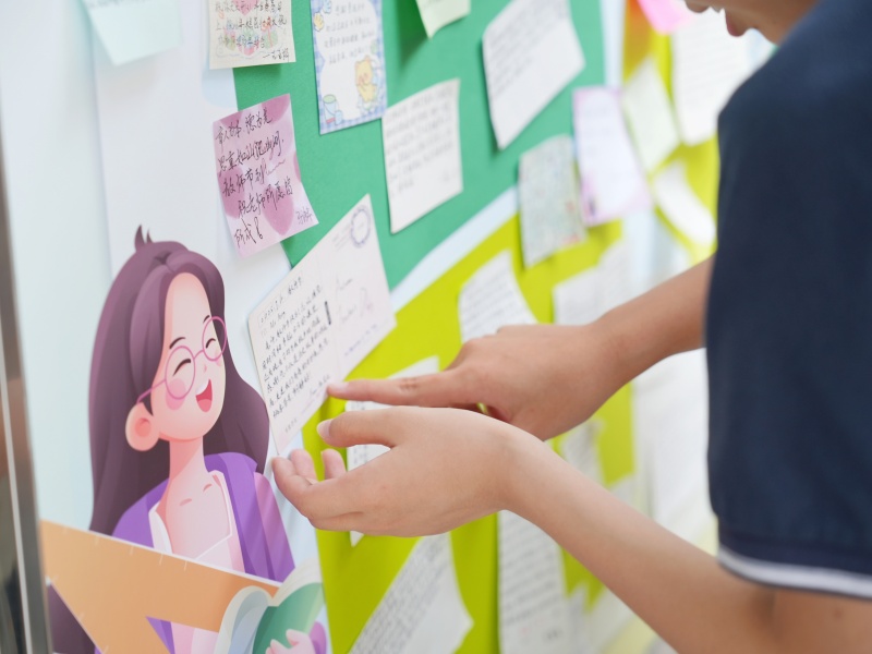 教学楼前的广场上,几块精心布置的展板格外引人注目,这便是团委组织的“师者如光,致谢恩长”留言墙。老师们用汗水浇灌着同学们的求知之路,同学们也想要以自己诚挚的话语表达对老师们的感谢。“感谢您,在我迷茫时给予方向”“您的课堂非常棒!我第一次上这么通透的数学课!”“忘不了您和风细雨般的话语,荡涤了我心灵上的尘泥”……一句句饱含深情的文字,如同涓涓暖流,流淌进每一位老师的心田。老师们驻足展板前,细细品读着孩子们的心声,脸上都露出了欣慰而感动的笑容。这份纯澈的心意,正是教师节最珍贵的礼物。