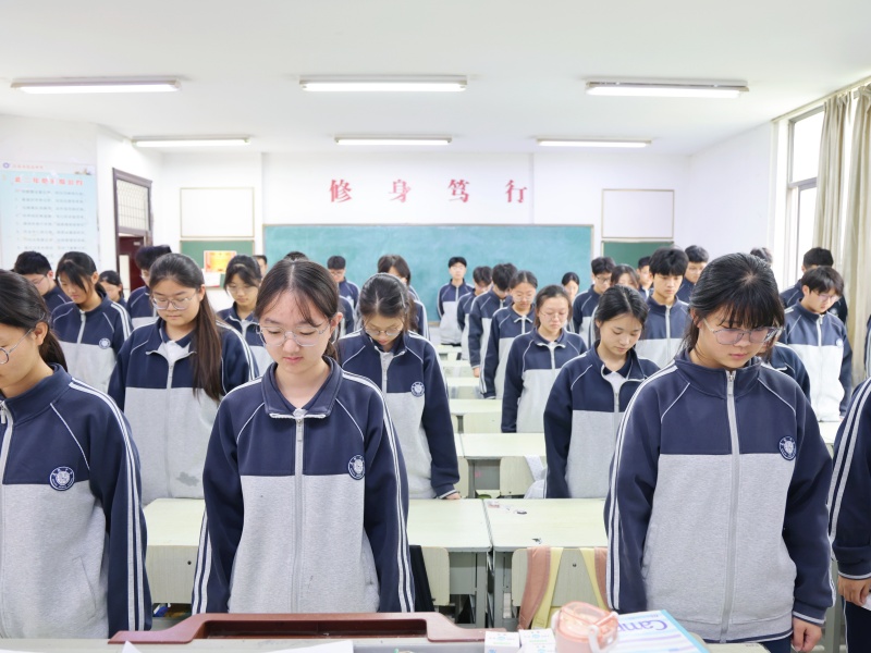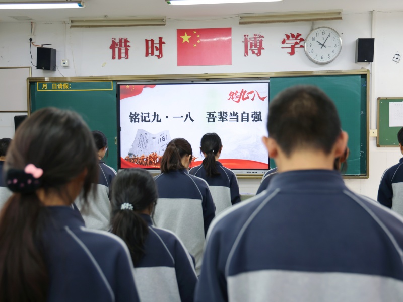 9月18日上午10时,全市警报拉响,我校响应号召,所有同学起立致敬默哀,同学们低垂着头,一起向毁家纾难、以血肉之躯筑起抗日长城的广大英烈和在抗日战争中失去生命的广大同胞们致敬。