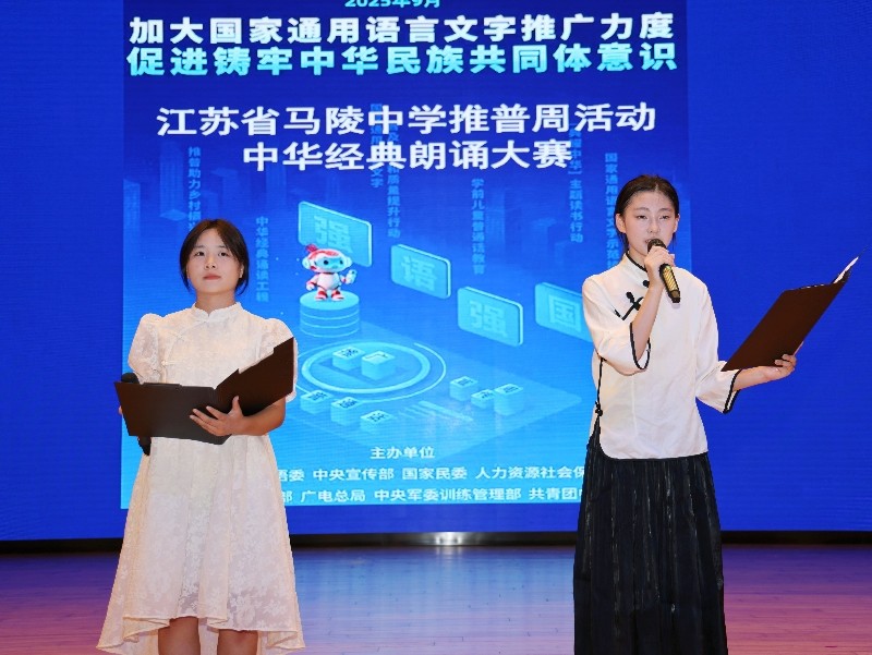 接着是普通话推广活动。9月18日晚上,经过高一年级语文备课组的精心筹备和初赛筛选,“推普周活动——中华经典诵读大赛”在艺术报告厅隆重举行。选手们以标准的普通话、精准的节奏把控,深情演绎《祖国啊,我亲爱的祖国》《再别康桥》《永远的九岁》《沁园春长沙》《青春万岁》等经典篇目,在抑扬顿挫间传递经典作品的独特魅力。