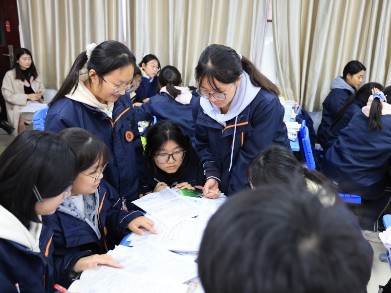 课堂上,执教教师立足学情精准备课,结合教材特点设计情境任务活动,通过分组学习、独学合学展学等形式,引导学生主动参与、大胆质疑、合作交流。语文课堂上,高雨洁老师以《我与地坛》为载体,带领学生在文本研读中建构认知、分享感悟;数学课堂上,闵凡莹老师围绕“双曲线”知识点,通过问题链驱动学生深度思考;英语课堂上,胡文静老师以B2 Unit1 Reading为依托,营造沉浸式语言运用场景…… 各学科示范课均聚焦“让学生动起来”的主题,既注重知识传授,更关注学生自主学习能力与核心素养的培养,充分展现了“三学”课堂和“养正学堂”的教学魅力。