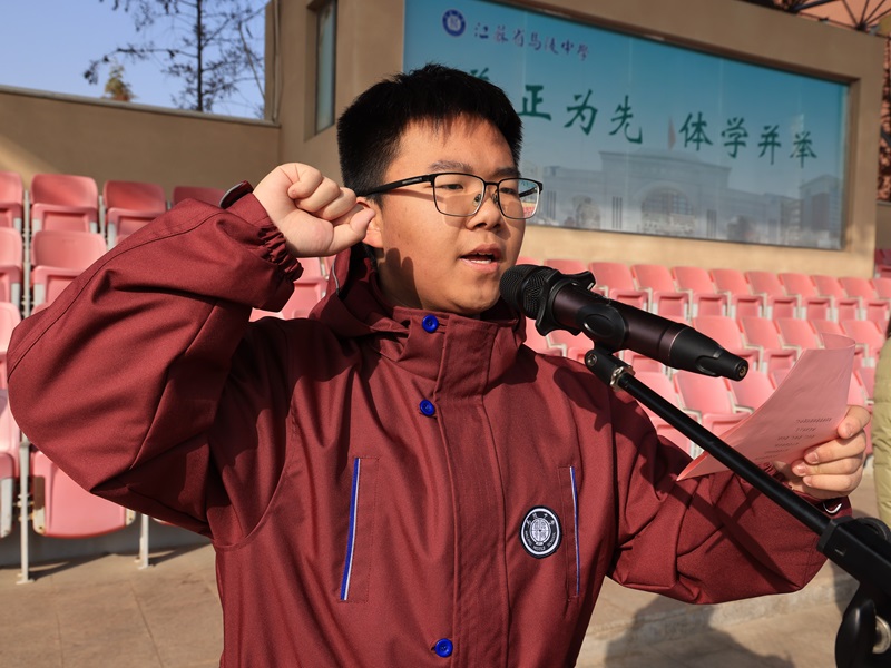 最后,在高一6班吴浩宁同学的带领下,全体学生举起右拳,庄严宣誓,誓言铿锵,回荡在校园上空,彰显着同学们践行法治精神、担当时代责任的决心。