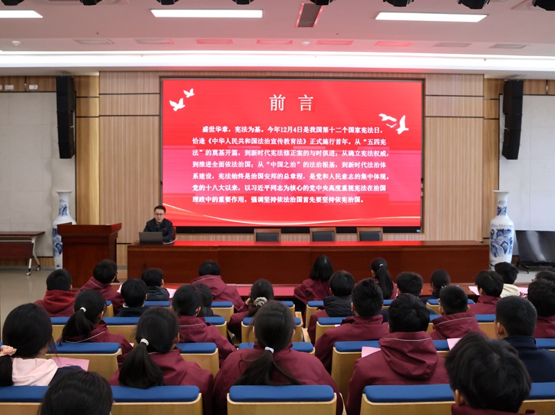 2025年12月4日是我国第十二个国家宪法日。为深入学习宣传宪法知识,弘扬宪法精神,增强学生法治意识,我校组织开展了“国家宪法日”主题教育活动,引导同学们将宪法精神融入日常学习与生活,做宪法忠实的崇尚者、自觉的遵守者、坚定的捍卫者。