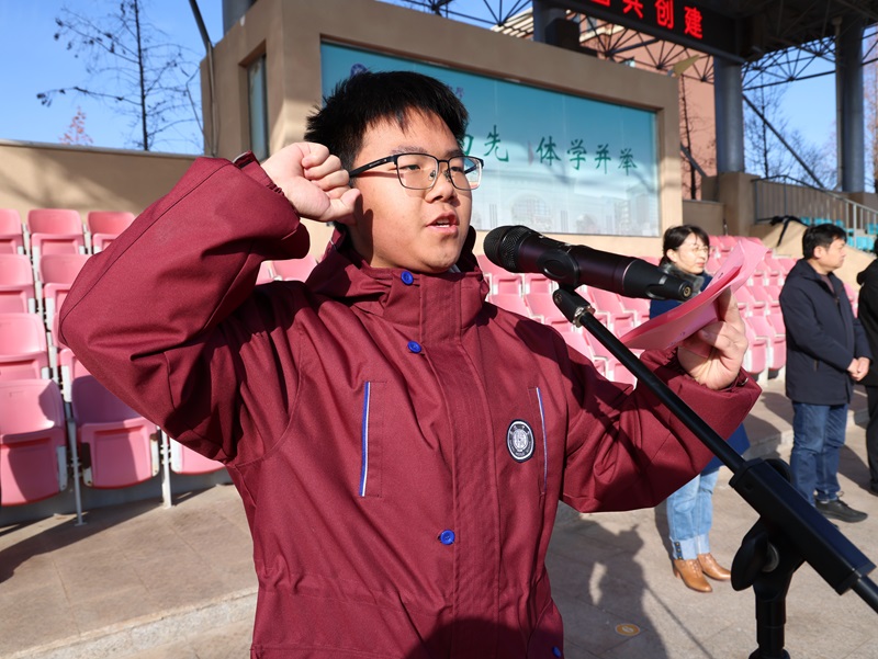 在宣誓环节,高一3班吴浩宁同学带领全体同学庄严宣誓。铿锵的誓言回荡在校园上空,彰显着同学们践行文明、砥砺品行的坚定决心。