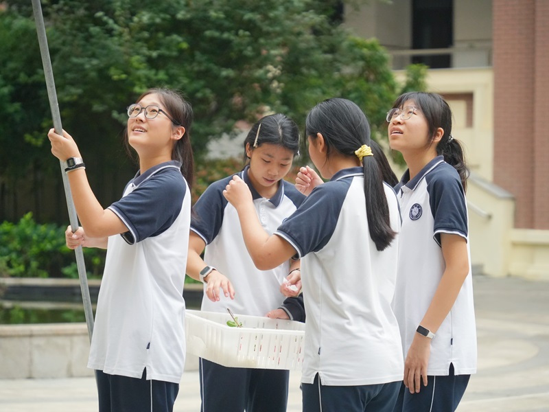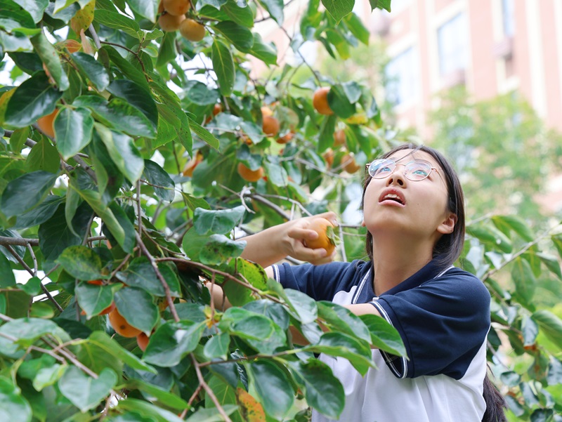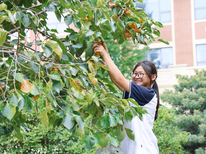 活动开始前,学校提前准备了采摘工具,并对参与学生进行了安全教育和采摘技能培训。午后,同学们在指导老师的带领下有序分工,分组协作,开始了忙碌而欢乐的采摘时光。梯子稳稳架起,采摘剪轻巧舞动,一双双专注的眼睛在枝叶间寻找成熟的果实,一双双灵巧的手将柿子、石榴轻轻摘下、传递、装筐。果园里笑语盈盈,劳动的热情与收获的喜悦在秋阳下交织流淌。