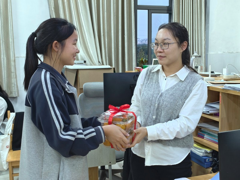 分装完成后,学生代表手捧包装精美的柿子礼盒,走进教师办公室、教研室,将这份带着泥土芬芳和手心温度的秋实,亲手送到老师们手中。收到这份意外而温暖的礼物,老师们脸上绽放出欣慰的笑容,连连称赞同学们“懂劳动、知感恩、会分享”。一时间,校园里洋溢着温馨与感动,劳动的果实因为分享而更加甜美,师生的情感因为传递而更加紧密。