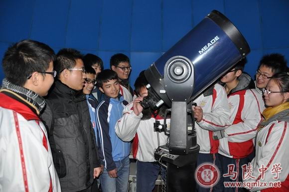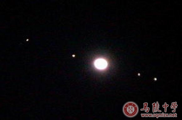 晚上7:00我校部分天文爱好者在龚长松老师指导下,在校天文台,通过天文望远镜清晰地看到木星和它的四颗最大卫星大致在一条直线上的现象,观测者非常兴奋。