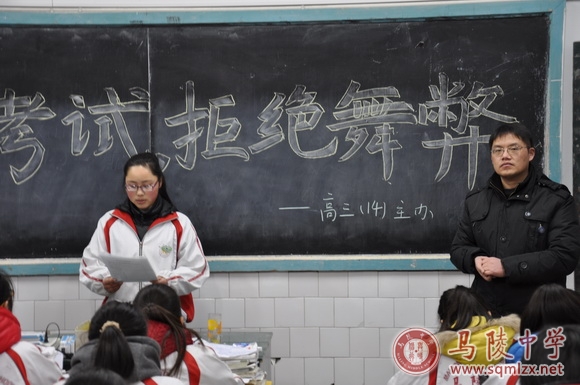 1月16日,高三年级即将迎来全市第一次模拟考试;1月18日,高一、高二年级也将迎来期末考试。为此,1月14日下午,我校召开了“诚信考试,诚信做人”主题班会。