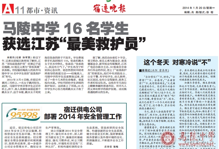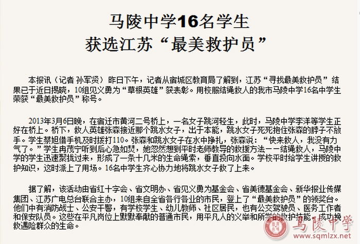 [宿迁晚报]马陵中学16名学生获选“最美救护员”