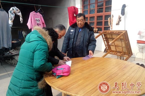 1月25日,高一年级主任盛莉,副主任李明、卢刚、朱卫一行4人又一次深入到仓集镇河西村、罗庄村、邱夏村和郑楼镇陈圩村、古城村、郑楼村、太平村王超等63位农户家中,将高一年级63位教师的温暖送给了他们,盛主任亲切地询问了帮扶家庭的详细情况,宣传了党的惠民政策,汇报了我校的办学、教学、管理等情况。