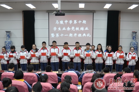 会议在庄严肃穆的国歌声中拉开序幕。首先总结第十期业余党校培训工作并宣读第十期学员的考核成绩。第十期学生业余党校于2013年5月开办,共有107名学员参加了学习,有87名学员取得了结业证书,其中陆旺等20名同学考核成绩优秀,被推荐为入党积极分子。