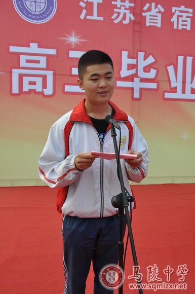 高三(7)班杨尓猛同学代表全体高三学子发表毕业感言。他深情地回忆了在陵中度过的美好的点点滴滴。他说,感谢母校,感谢一起走过三年的老师,一定带着老师们的殷殷嘱托,用最好的收获来回报母校,回报恩师。