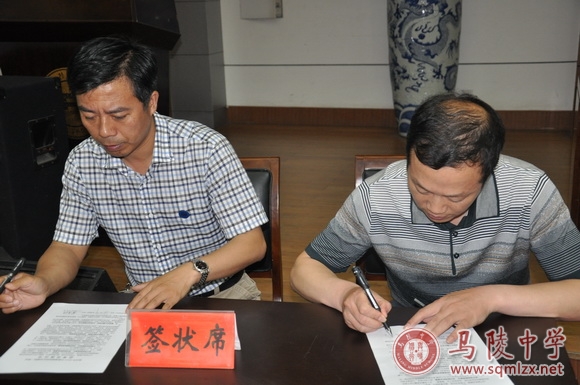 宋志平与外出监考老师签订《宿迁市2014年普通高校招生全国统一考试监考员责任书》后做了四点强调:一、加强纪律观念;二、把去监考的学校看做自己现在从教的学校;三、慎言慎行;四、外出监考的老师,代表马陵中学形象,要尽心尽责做好本职工作,服从考点领导的统一指挥和安排。