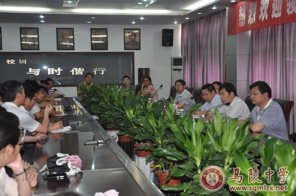 6月11日下午3点,董旭午、吴星、陆军、徐立刚、韩广军、徐孟军等六位名师与宿迁市教育局及我校领导见面会后即考察教学区、学生生活区,了解我校概况。宿迁市教育局组织人事处副处长葛井井、马陵中学党委书记张美华等领导全程陪同。