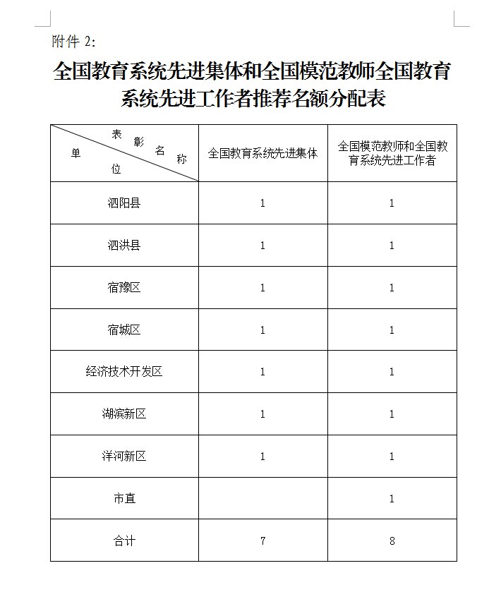 2. 全国教育系统先进集体和全国模范教师全国教育系统先进工作者推荐名额分配表
