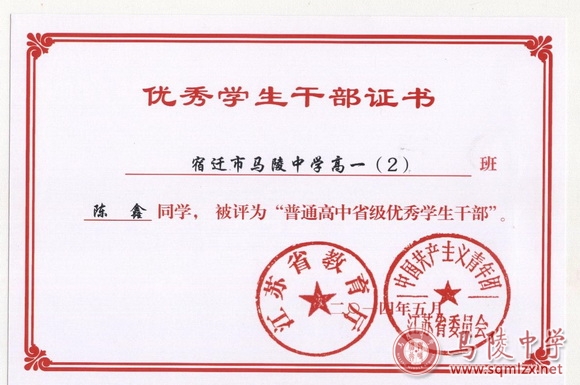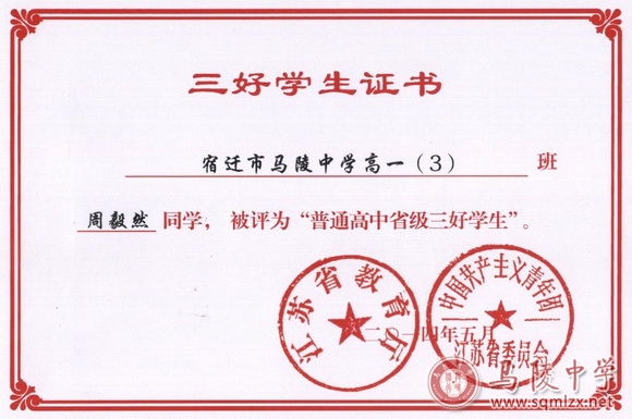 省三好学生获奖证书