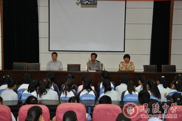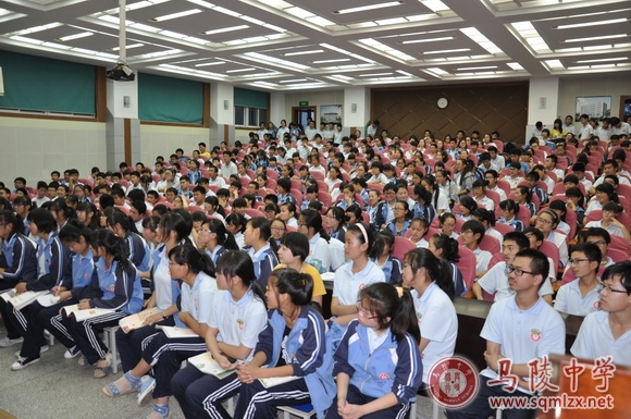 宋校长首先介绍了学校的历史和发展历程,接着绘声绘色地描述了新校区,谈硬件配置,尤其是谈到新校区6人间宿舍的时候,不少同学露出难以置信的神色,接着就是全场热烈的掌声。随后,宋校长通报了我校今年高考成绩,学生们则以热烈的掌声表示祝贺。最后,宋校长对学生选科进行了引导。